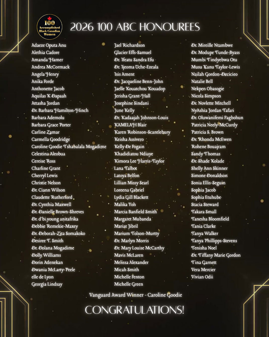 100ABCWomen is pleased to present 500 Accomplished Black Canadian Women who have made Considerable contributions and impact, now, and over several decades, to our Youth and the Fabric and Landscape of Canada. Please join us in celebrating their successes and accomplishments during Black History and Women’s International Months!!
